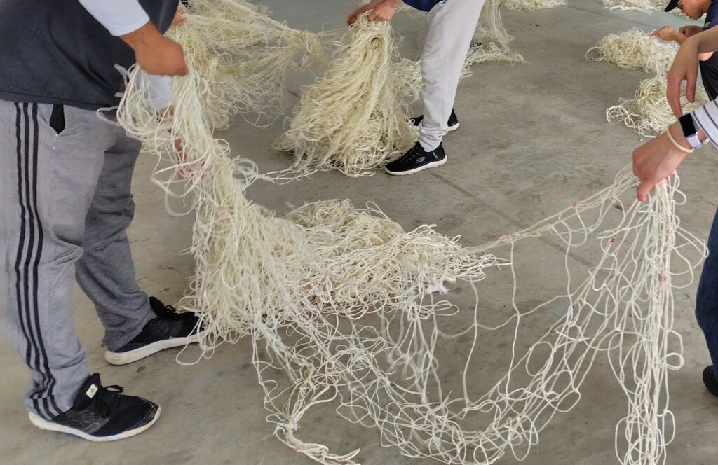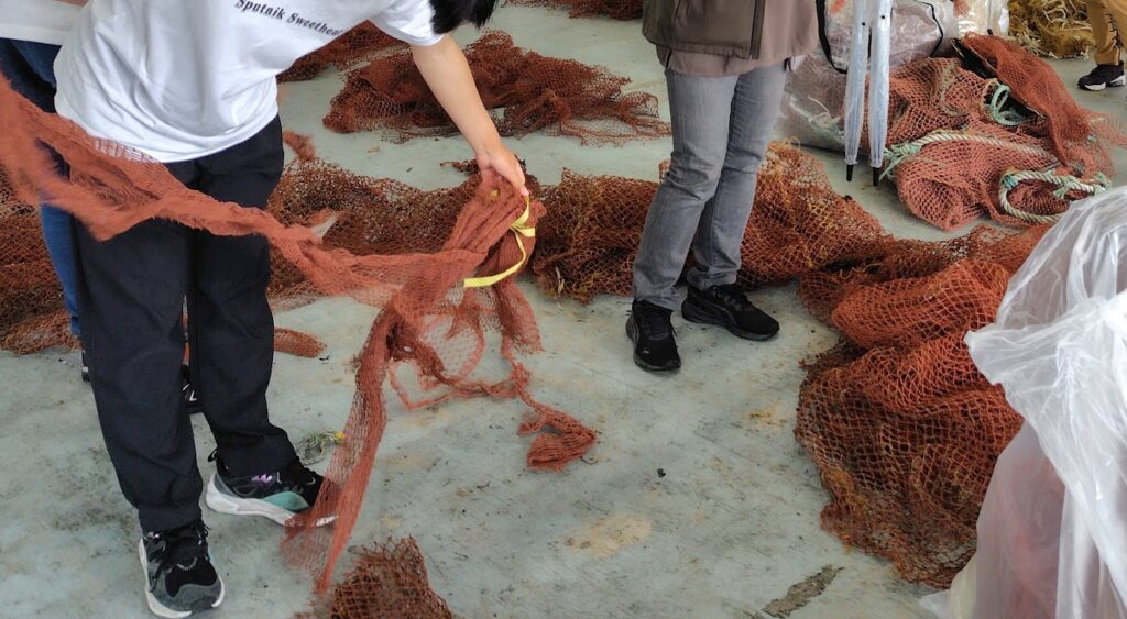 漁協と連携し、漁業やノリ養殖で使用して役割を終えた漁網を、新しい視点で活用していくことを考える機会を提供しています。
